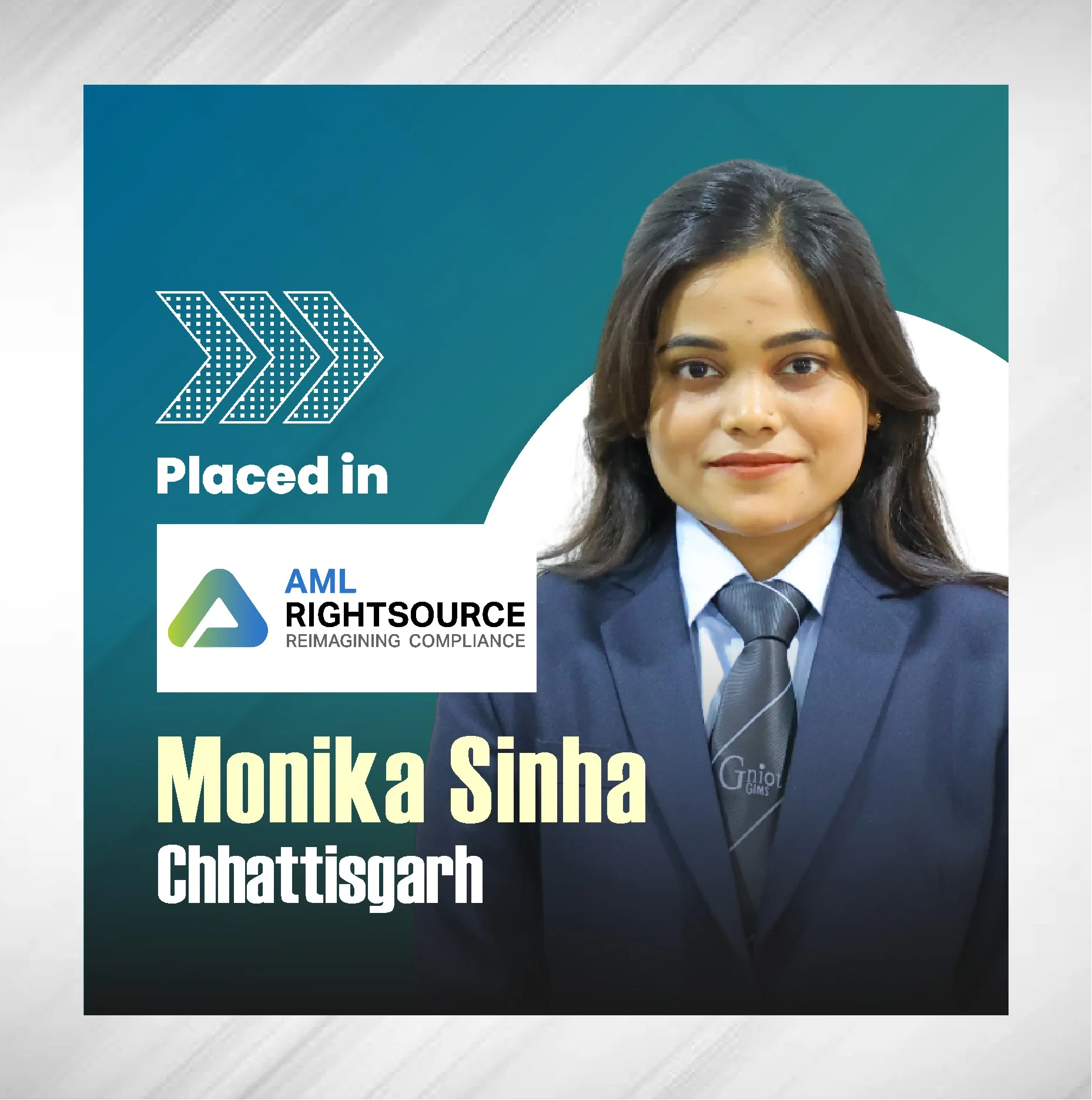 GIMS, Greater Noida proudly announces Final selection of its PGDM 2024-26 Batch student in AML Rightsource as Financial Crime Compliance Analyst. We wish them the best for a great career ahead!